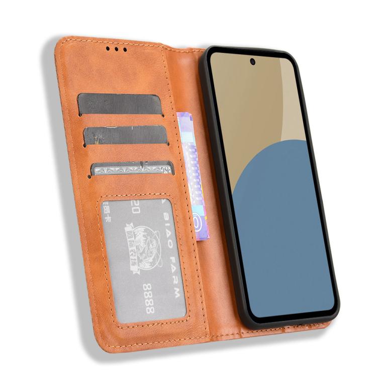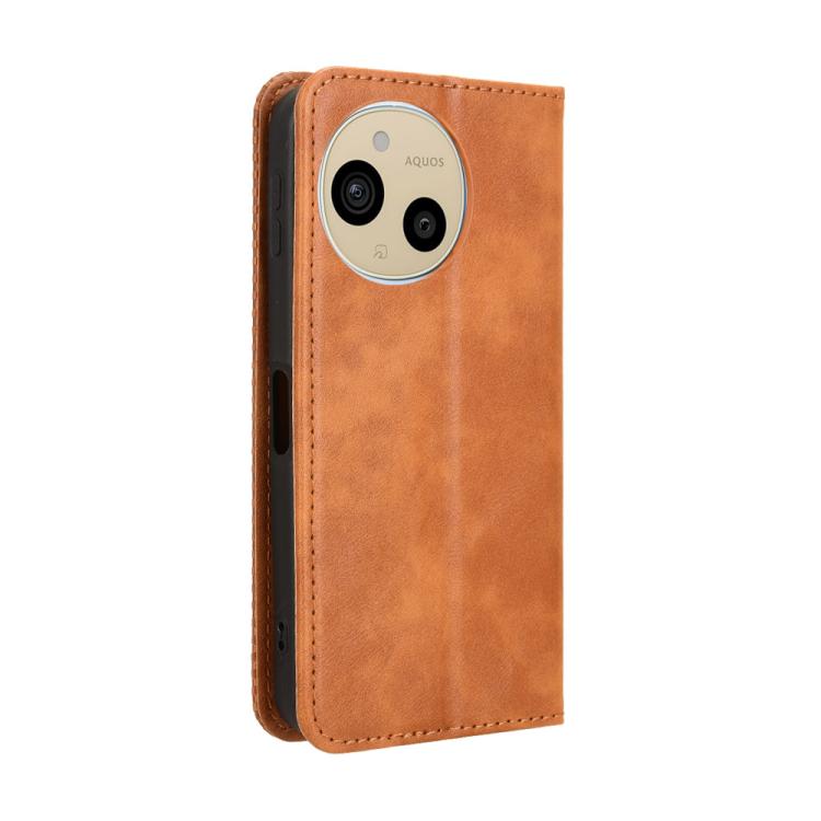 Funda de Cuero Sharp Aquos Sense9 Textura Retro Hebilla Magnética (Marrón)