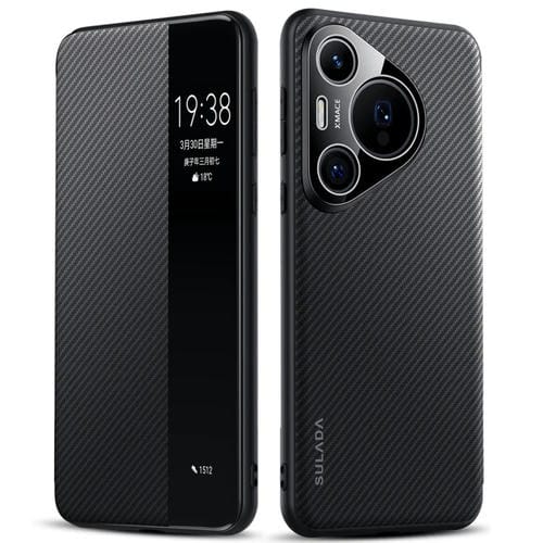 - 1x Funda de Cuero con Ventana Inteligente y Textura Kevlar 600D para Huawei Pura 70 Sulada (Negro)
