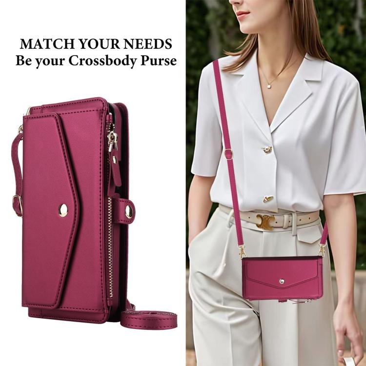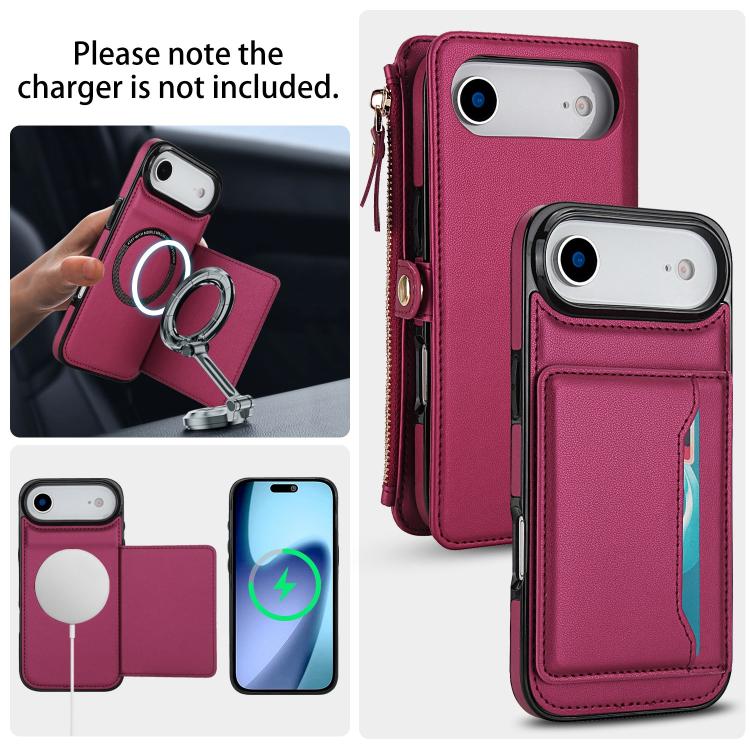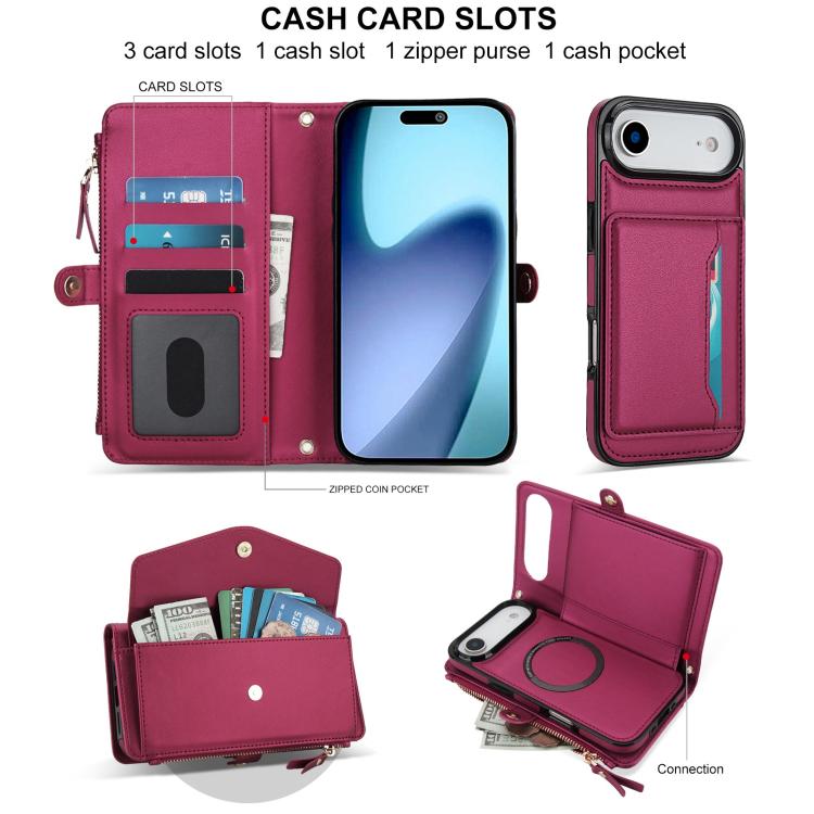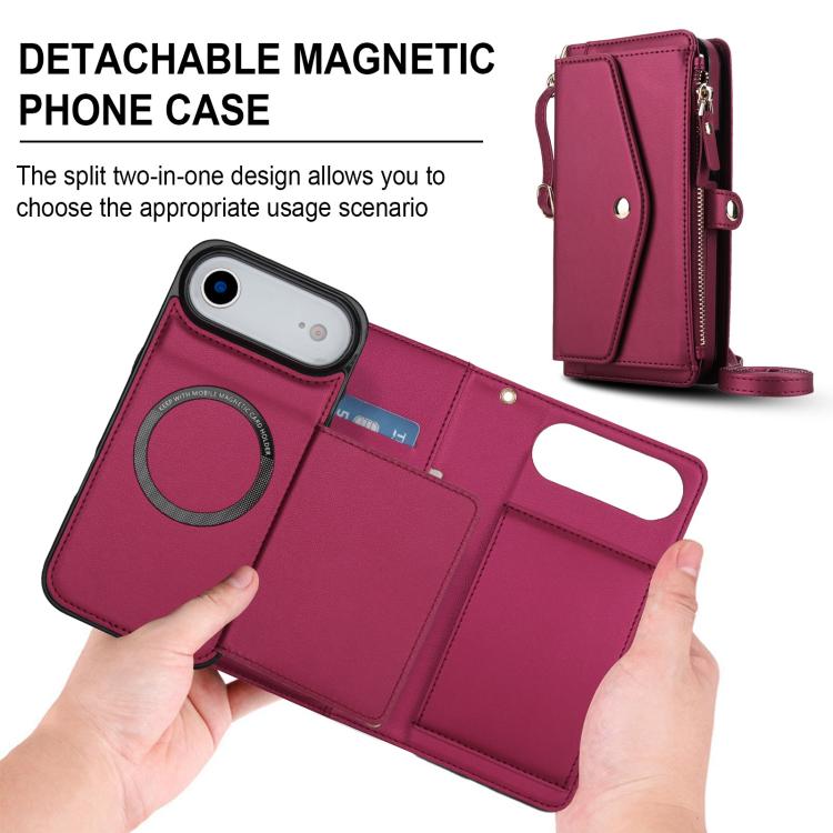 Funda de cuero desmontable con cordón para iPhone Air, multifuncional, color rojo
