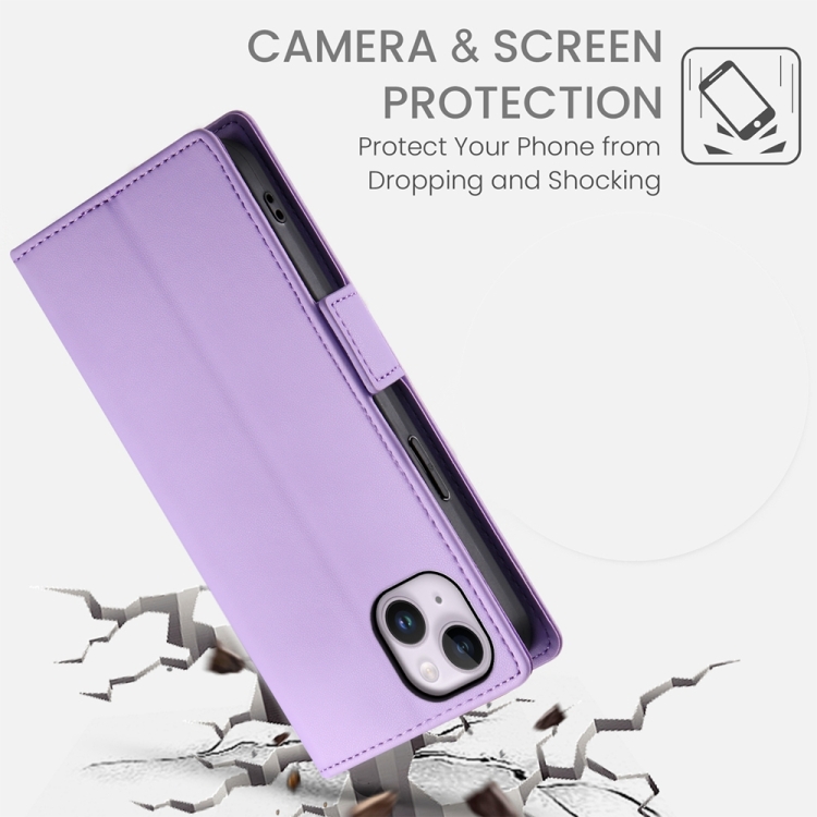 Funda de Cuero Esmerilado con Hebilla Lateral Magnética para iPhone 14 Plus (Morado)
