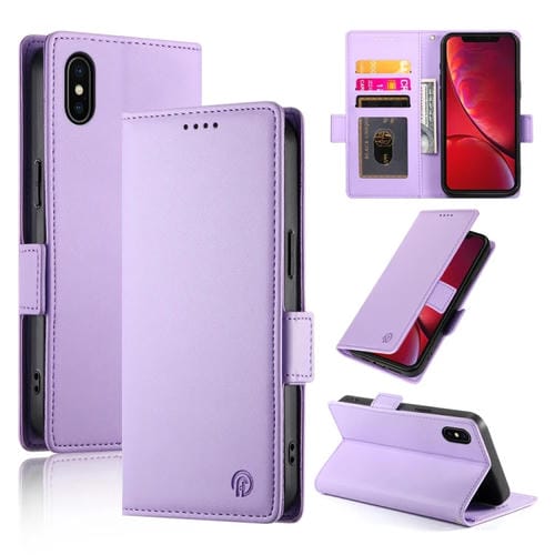 Funda de Cuero Esmerilado con Hebilla Lateral Magnética para iPhone X/Xs (Morado)