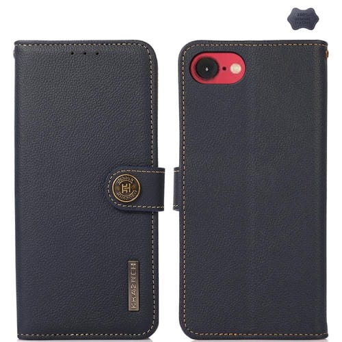 Funda de Cuero Genuino Khazneh Custer para iPhone 16E Función Rfid (Azul)