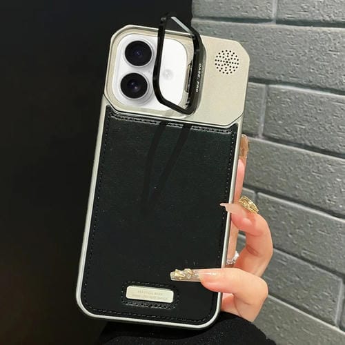 Funda de Cuero con Soporte de Metal para iPhone 16 Magsafe (Negra)