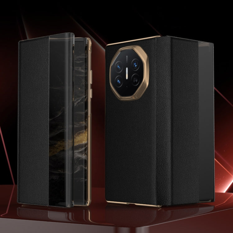 Funda de Cuero con Ventana Lateral Inteligente para Huawei Mate Xt Ultimate (Negra)