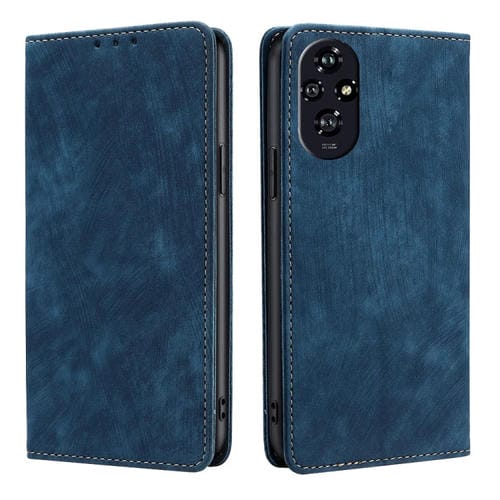 Funda de Cuero Magnética con Cepillo Antirrobo RFID para Honor 200 5G (Azul)