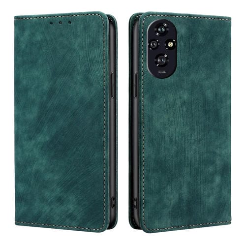 Funda de Cuero Magnética Honor 200 5G con Cepillo Antirrobo RFID (Verde)