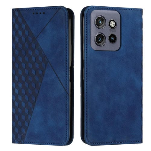 Funda de Cuero Magnética Motorola Edge 50 Neo con Diseño de Diamante y Tacto de Piel (Azul)