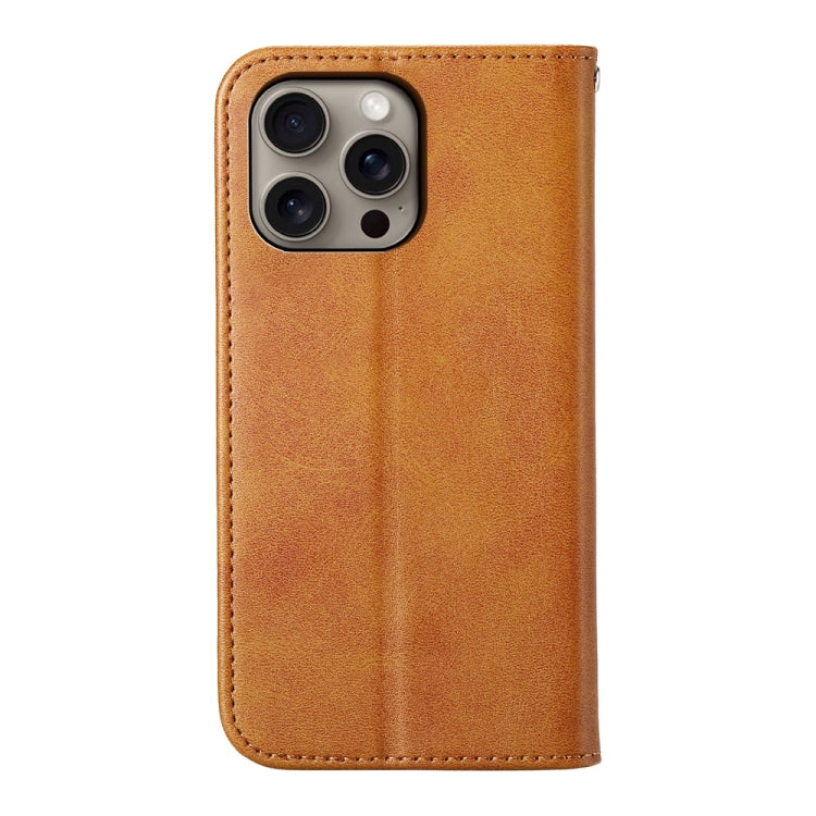 Funda de Cuero Magnética iPhone 16 Pro Max Textura de Becerro Cuadrícula Cúbica (Amarillo)