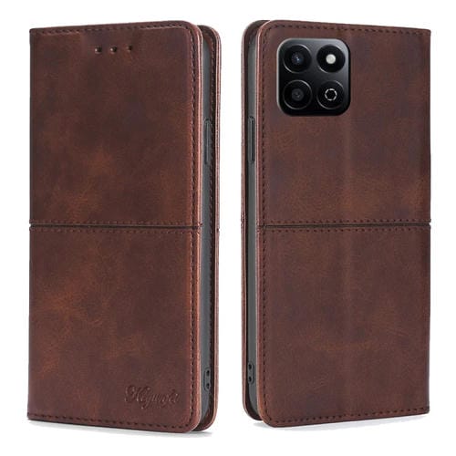 Funda de Cuero Magnética con Textura de Vaca para Honor Play 60 Plus (Marrón Oscuro)