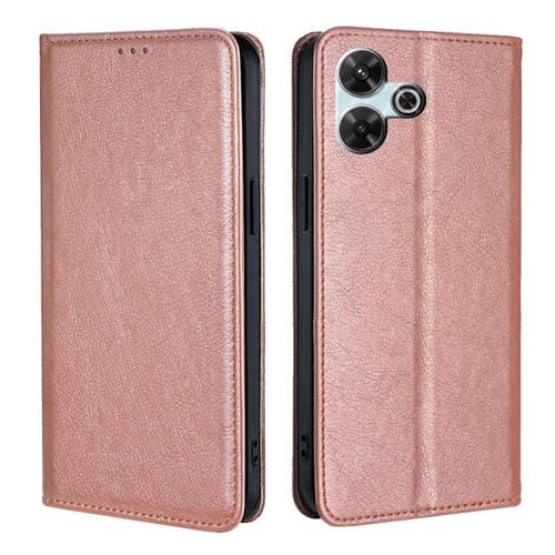 Funda Magnética de Cuero con Acabado Brillante y Aceite para Redmi 13 4G (Oro Rosa)