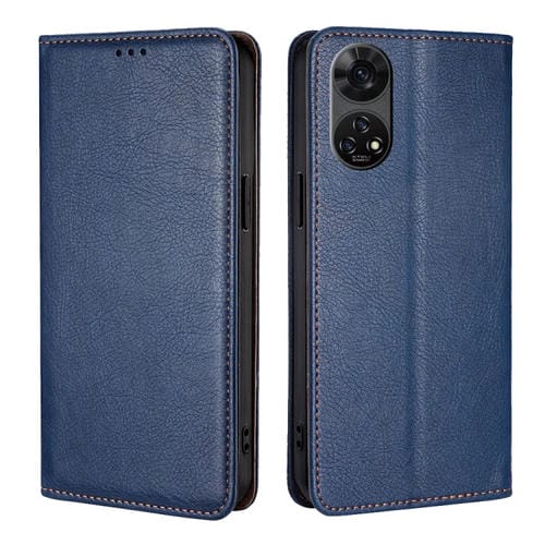 Funda de Cuero Magnética para Teléfono ZTE Anshin Color Sólido Acabado Brillante (Azul)