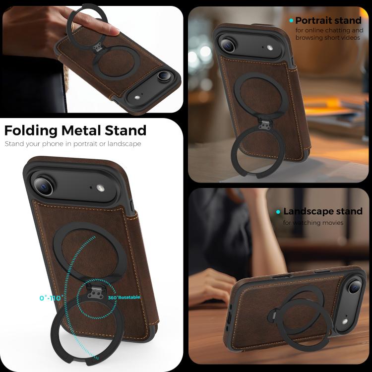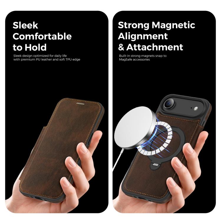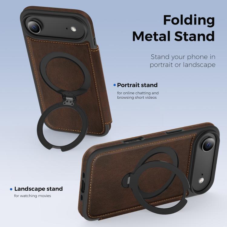 Funda de cuero MagSafe RFID para iPhone Air Knight Shield con rotación de 360 grados (café)