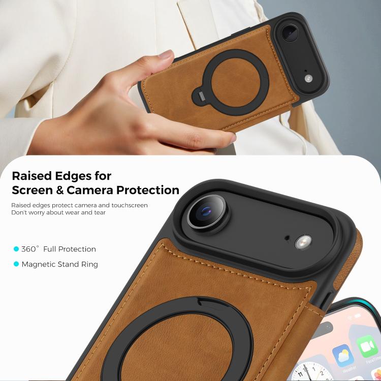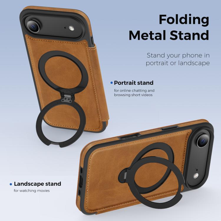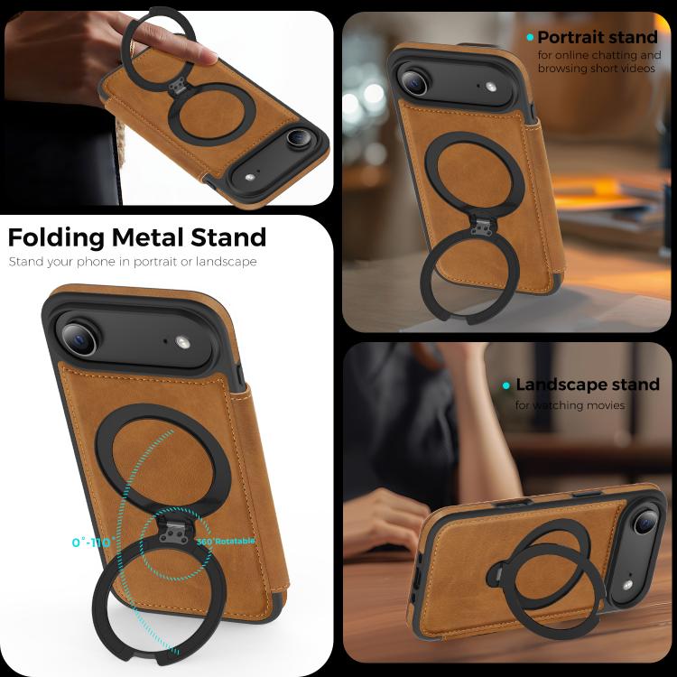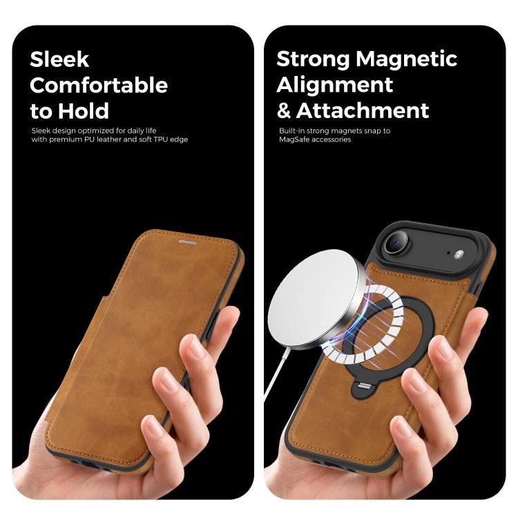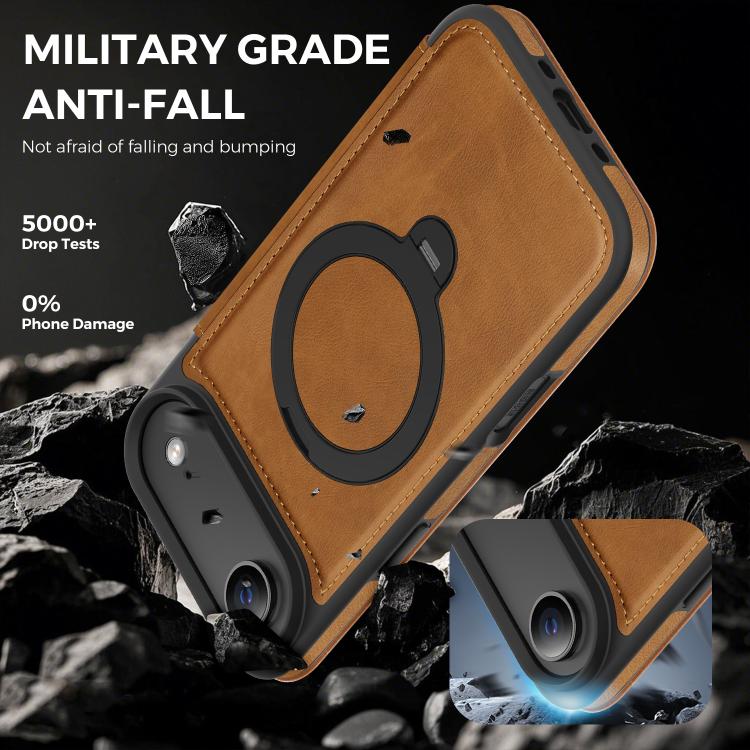 Funda de cuero MagSafe RFID para iPhone Air Knight Shield con rotación de 360 grados (marrón)
