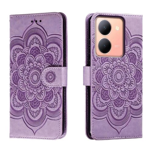 Funda de Cuero para Teléfono con Estampado de Mandala y Sol para Vivo Y78 (Morado)