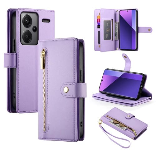 Funda de Cuero para Teléfono con Nueve Ranuras para Tarjetas y Cremallera para Redmi Note 13 Pro+ (Morado)