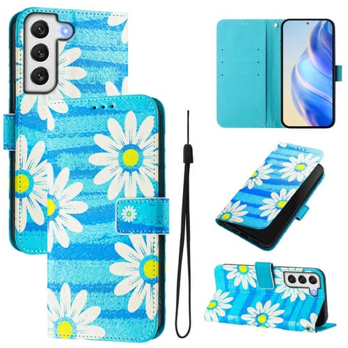 Funda de Cuero para Teléfono Samsung Galaxy S22+ 5G Patrón Dibujo Artístico (Margarita Azul)