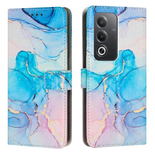 Funda de Cuero para Teléfono con Patrón de Mármol Pintado de la India para Oppo A3 Pro 5G (Rosa y Verde)