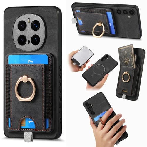 Funda de Cuero con Tarjetero Magnético Divisible para Honor Magic 7 Pro (Negro)