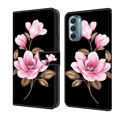 Funda de Cuero Pintada a Mano Motorola Moto G Stylus 5G 2022 (Flores Negras)