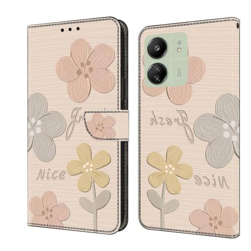 Funda de Cuero Pintada a Mano para Redmi 13C (Flores Beige)