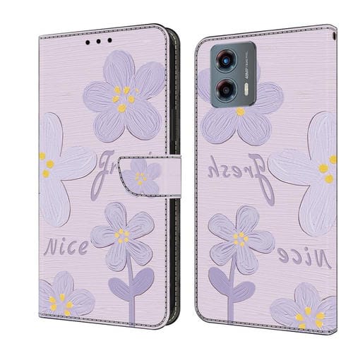 Funda de Cuero Pintada a Mano para Motorola Moto G 2023 (Flores Morado Oscuro)