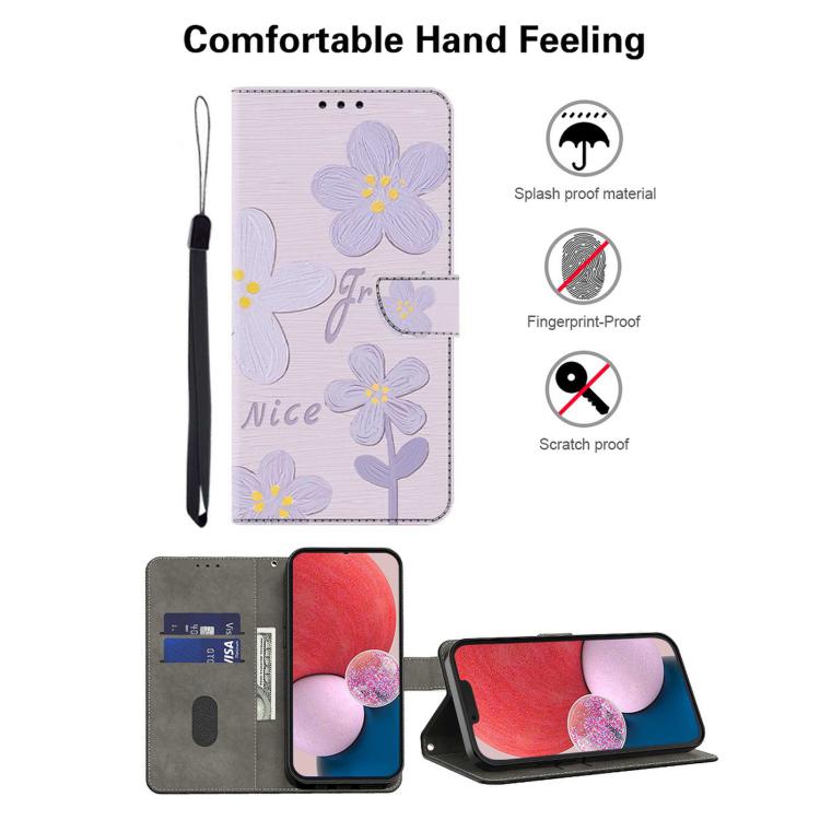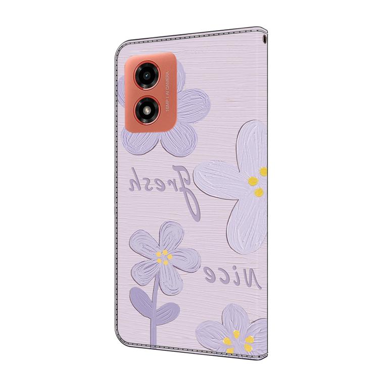Funda de Cuero Pintada a Mano para Motorola Moto G04 con Flores (Morado Oscuro)