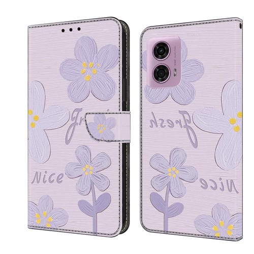 Funda de Cuero Pintada a Mano Motorola Moto G24 con Flores (Morado Oscuro)