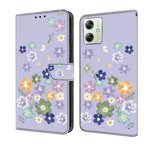 Funda de Cuero Motorola Moto G54 Pintada a Mano Floral (Morado)