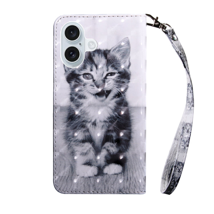 Funda de Cuero para iPhone 16 Plus Pintada en 3D Gato Sonriente