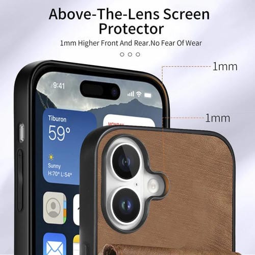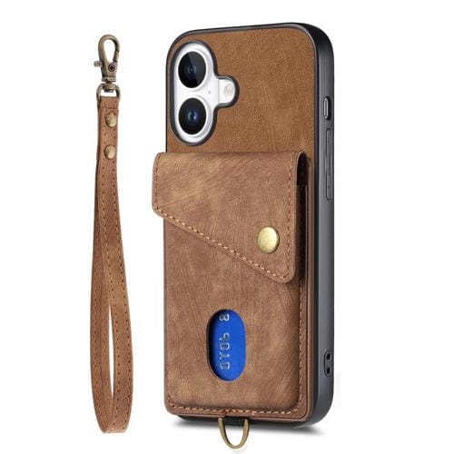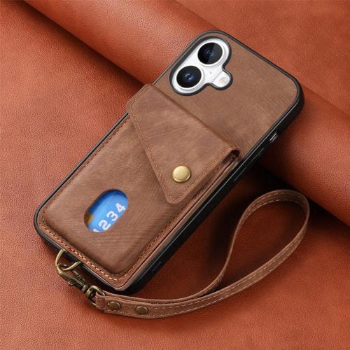 Funda de cuero plegable estilo billetera retro para iPhone 17 con correa (marrón)