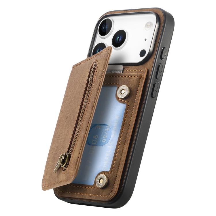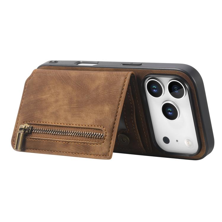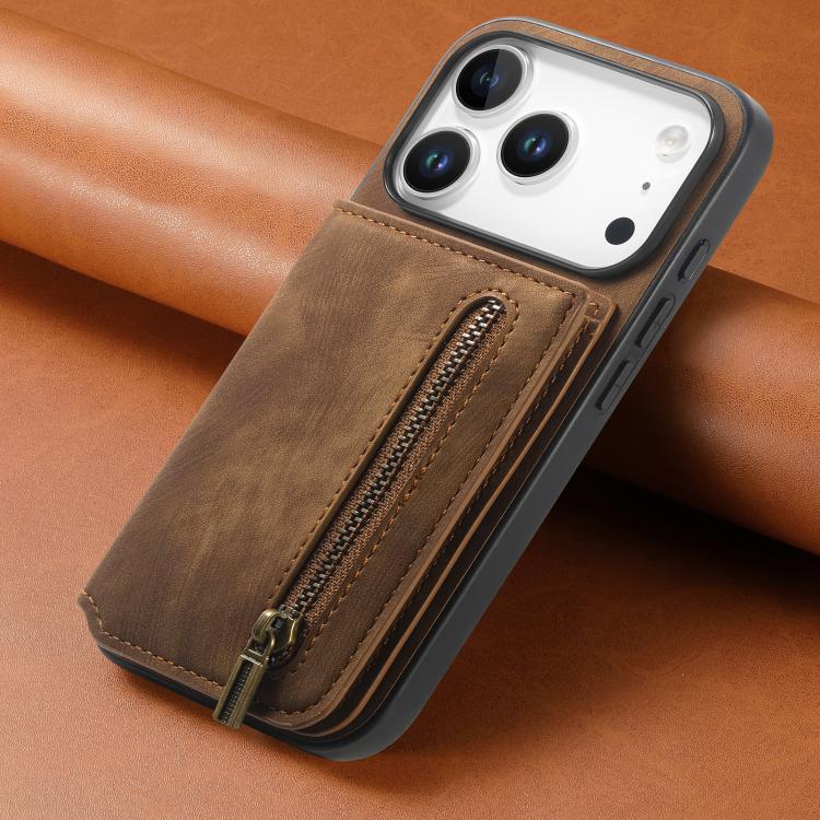 Funda de cuero retro con cremallera para iPhone 17 Pro Max (marrón)