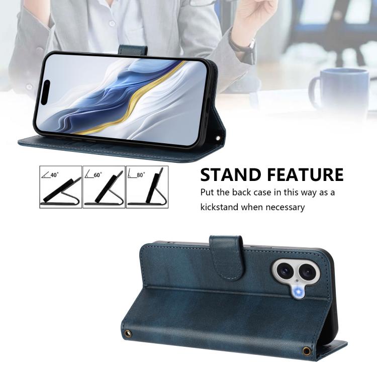Funda de cuero retro con hebilla y empalme de líneas para iPhone 17 (azul oscuro)