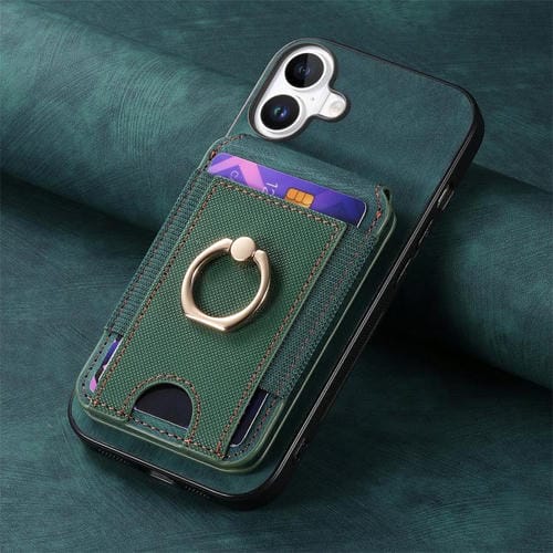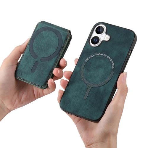 Funda de cuero retro con tarjetero y soporte magnético divisible para iPhone 17 (verde)