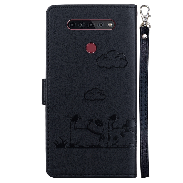 Funda de Cuero Rfid para LG K41S/K51S con Diseño de Gatos (Negra)