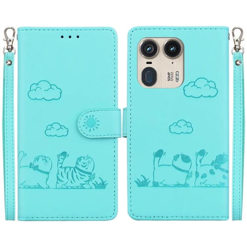 Funda de Cuero Rfid para Motorola Edge 50 Ultra con Diseño de Gatos (Verde)