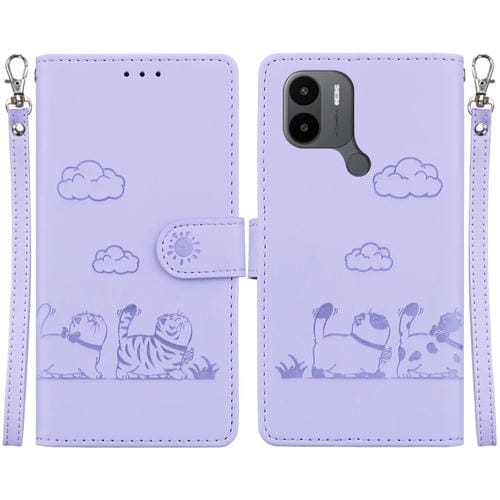 Funda de Cuero Rfid con Diseño de Gatos para Xiaomi Poco C50 (Morado)