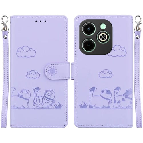 Funda de Cuero Rfid para Infinix Smart 8/8 HD/Hot 40I (Morado) con Diseño de Gatos