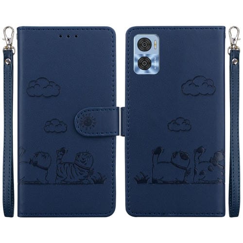 Funda de Cuero Rfid para Motorola Moto E22/E22I con Diseño de Gatos (Azul)