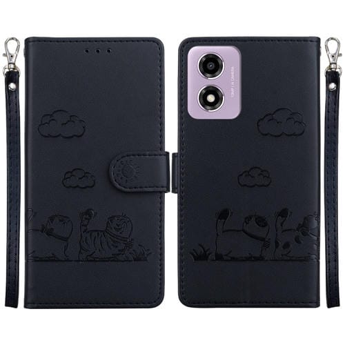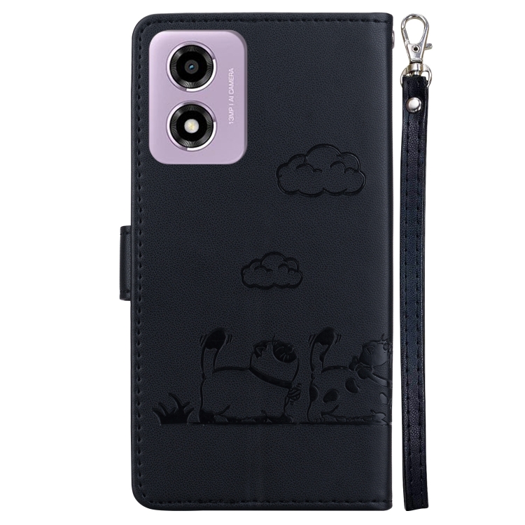 Funda de Cuero Rfid para Motorola Moto G04S/E14 con Diseño de Gatos (Negra)