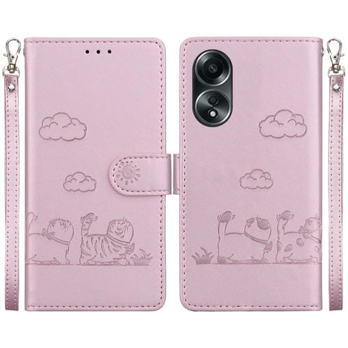 Funda de Cuero Rfid con Diseño de Gatos para Oppo A58 4G (Oro Rosa)