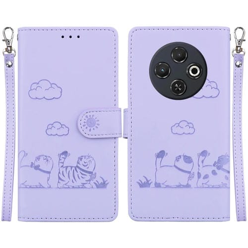 Funda de Cuero Rfid para Tecno Spark 30C con Diseño de Gatos (Morado)