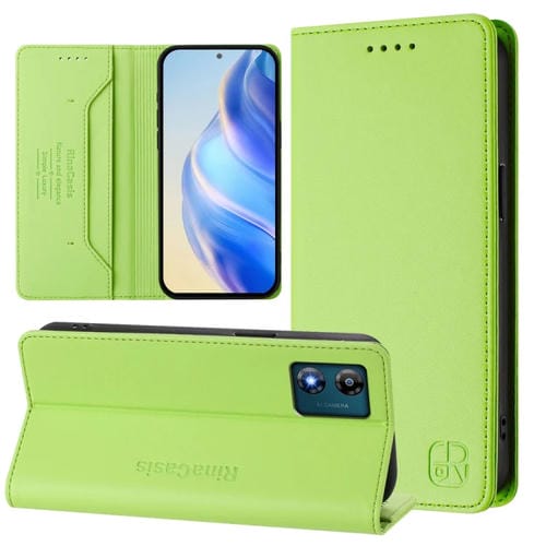 Funda de Cuero Rfid para Motorola Moto E13 Rc01 con Doble Pliegue y Succión Magnética (Verde Hierba)