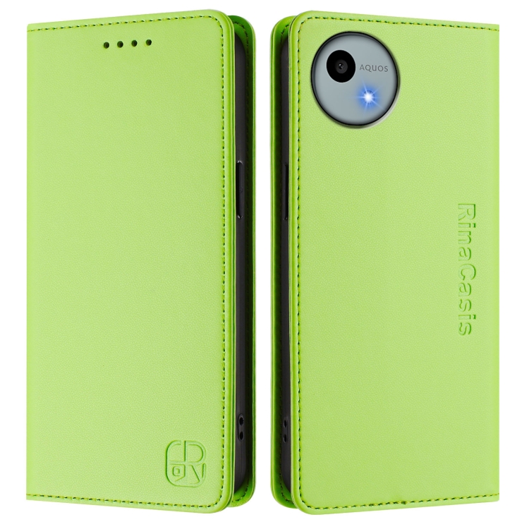Funda de Cuero Rfid para Sharp Aquos Wish4 Sh-52E Rc01 con Doble Pliegue y Succión Magnética (Verde Hierba)