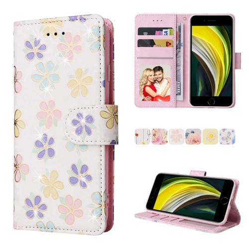 Funda de Cuero Rfid para iPhone Se 2022 / Se 2020 / 7 / 8 con Pintura Bronceadora (Flor Floreciente)