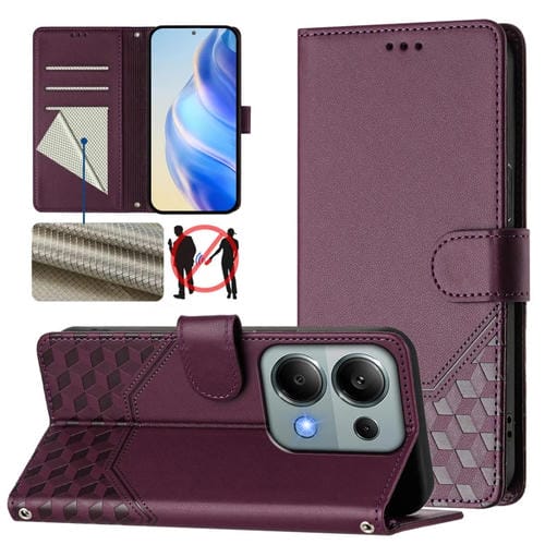 Funda de Cuero Rfid con Relieve de Panal Global para Redmi Note 13 Pro 4G (Violeta)
