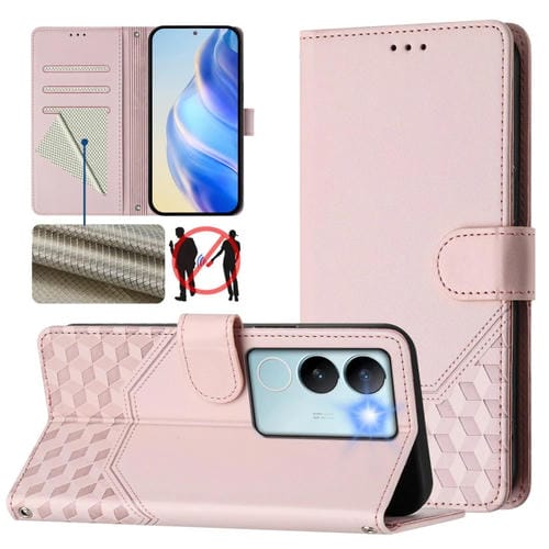 Funda de Cuero Rfid con Relieve de Panal Global para Vivo V29 5G/V29 Pro (Rosa)