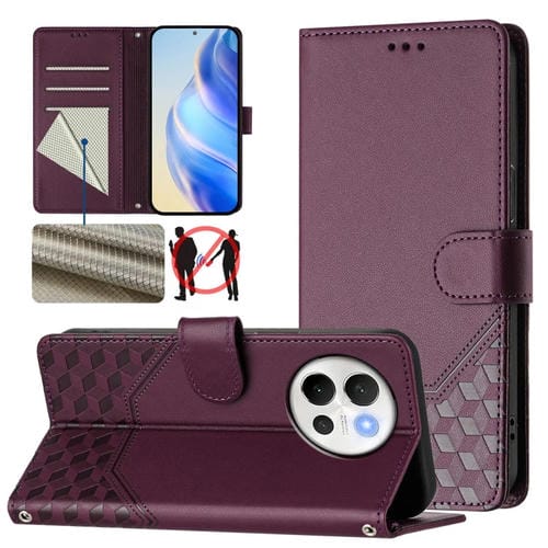 Funda de Cuero Rfid con Relieve de Panal Global para Vivo V40 Lite 5G/V30E 5G (Violeta)