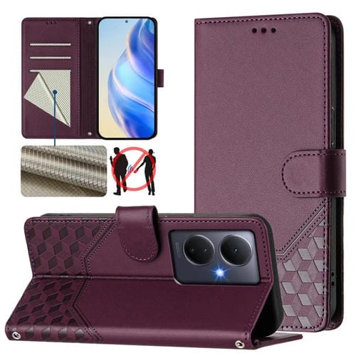 Funda de Cuero Rfid con Relieve de Panal Global para Vivo Y78+ 5G / Y78 5G (Violeta)
