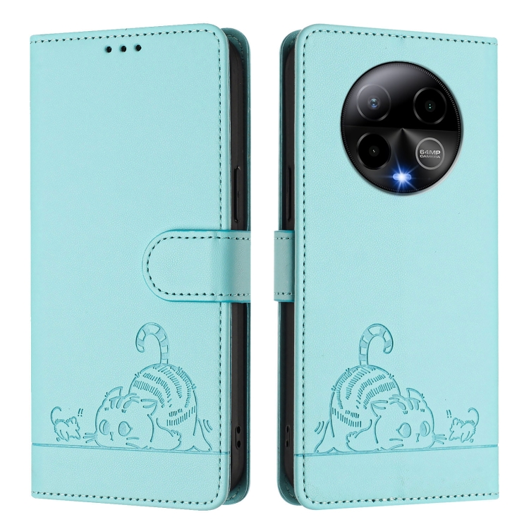 Funda Cuero RFID con Relieve Rata y Gato para Blu Bold K50 con Cordón (Verde Menta)