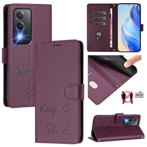 Funda de Cuero Rfid con Relieve de Sonrisa Global para Oppo K12X 5G (Violeta)